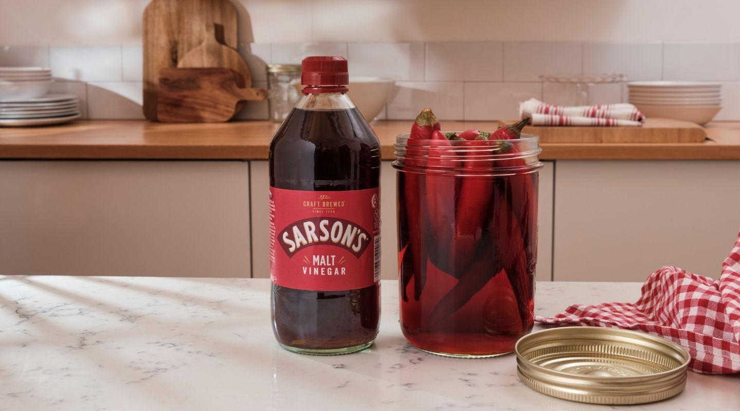 - Add the chillies to a jar and fill with the Sarson’s Malt Vinegar. The longer you leave the vinegar to mature, the more the flavour and spice will develop.